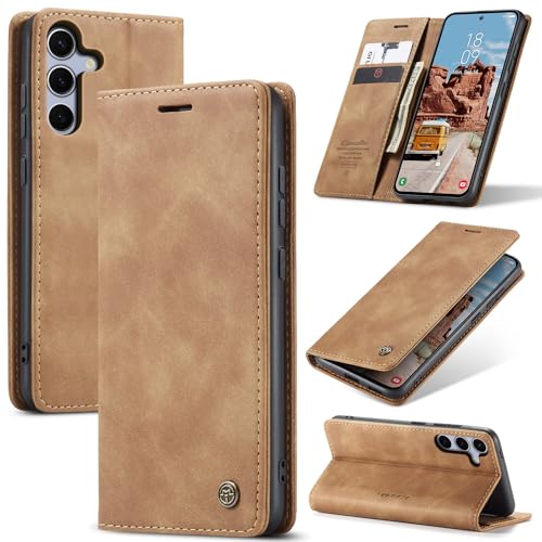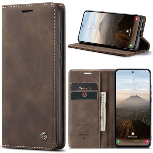 Coque pour Samsung Galaxy S25 Plus / S25+ Antichoc Étui Samsung Galaxy S25 Plus/ S24 Plus 5G Housse Protection en Cuir Magnétique Flip Case Portefeuille Etui en Protecion pour Samsung S25 Plus, Brun