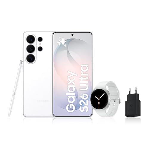 Samsung Galaxy S26 Ultra, avec Galaxy AI, 1 to, Blanc Galaxy Watch8, 40mm, Argent, Bluetooth, Chargeurs secteurs Rapides 25W Inclus, Version FR