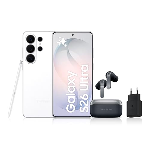 Samsung Galaxy S26 Ultra, avec Galaxy AI, 256 Go, Blanc Galaxy Buds4 Pro, Noir, Chargeurs secteurs Rapides 25W Inclus, Version FR