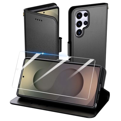 Aiziki Coque pour Samsung Galaxy S26 Ultra, Flip Case+1 Verre trempé, Etui Protection Housse Premium en Cuir PU, [Pochette de Portefeuille] [Fermeture Magnétique] [Etui à Rabat]- Noir