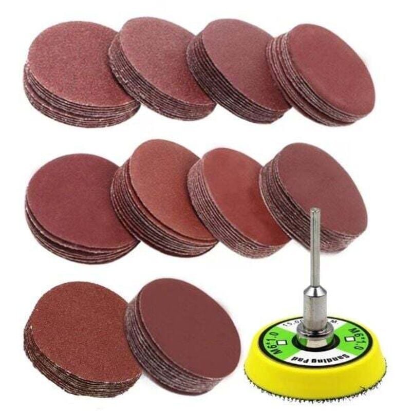 100 Pièces 50mm Disque de Ponçage, , Disque Abrasif, Papier Sablé de 60, 100, 120, 150, 180, 240, 320, 800, 1200, 2000 (10 Disques par Taille de