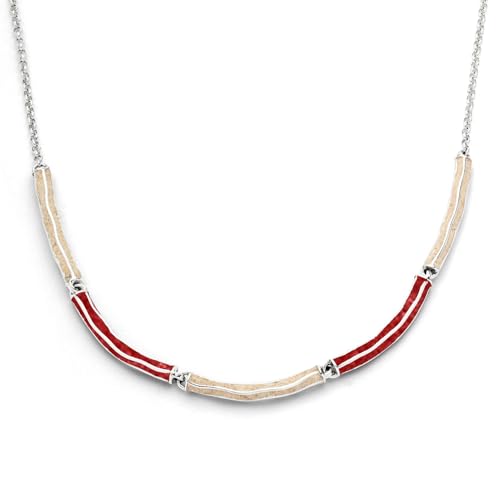 DUR - Bijoux Femme Chaîne Jeu de Vagues avec Sable de Plage & Corail - Argent 925 Rhodié - Fait Main - 42 cm + 3 cm d'Extension - Bijoux Marins K2919, Länge: 450 mm, Breite: 4mm, corail, argent 925