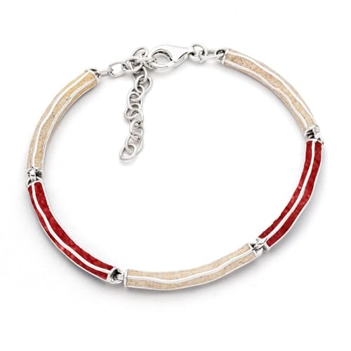 DUR - Schmuck A1825 Bracelet pour femme en forme de vague avec sable de plage et corail mosaïque rouge – Argent 925 rhodié – Fait main – 16,5 cm – Bijou maritime en argent, Länge: 165 mm, Breite: 7 mm