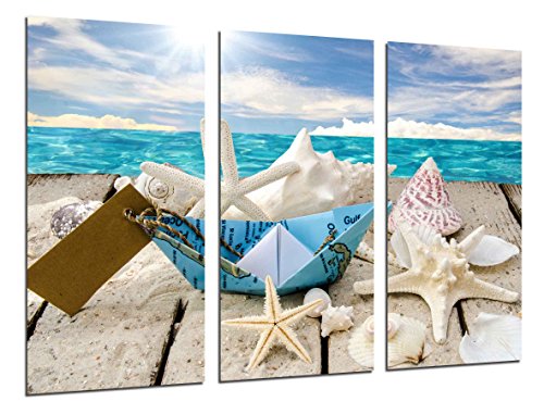 Cuadros Camara Tableau Moderne Photographique, Impression sur bois, Paysage de mer Vintage, coquillages, Conches, plage, sable, 97 x 62 cm, ref. 26482