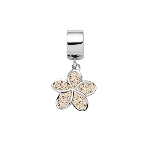 DUR Pendentif simple fleur de Plumeria pour femme en argent sterling 925 avec sable de plage, couleur : argent et sable, dimensions : 1,7 x 1,15 cm, F320, 1,7x1,15 cm, Argent sterling, Pas de gemme