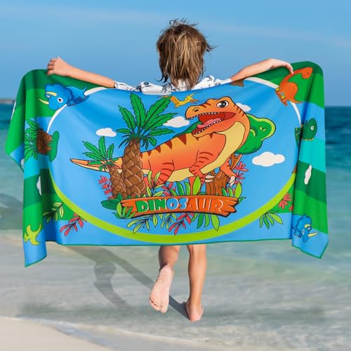 Serviette de Plage Enfant Dinosaure 75 x 150 CM Grande Serviette Plage Microfibre, Anti Sable Drap de Plage Garcon Séchage Rapide, Absorbant Doux Serviettes pour Plage Piscine Douche Voyage Camping
