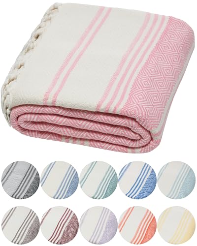 DEMMEX Serviette Hammam Peshtemal en Coton Turc Bio – Légère, Absorbante et à Séchage Rapide, Anti-Sable, Serviette de Plage et Bain, 180x90 cm (Rose poudré)