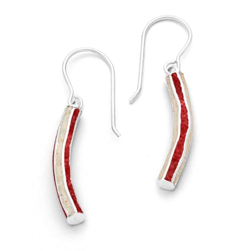 DUR - Bijoux Boucles d'oreilles pendantes pour femme avec sable de plage et granulés de corail – Fait à la main – Argent 925 rhodié – Bijoux maritimes – env. 25 mm, O5526, Höhe: 25 mm, Breite: 4 mm