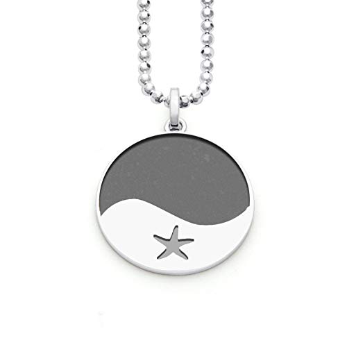 DUR Pendentif vague étoile de mer pour femme en argent sterling 925 de couleur argentée et noire - Hauteur : 26 mm - P3661, Höhe: 26 mm, Argent sterling Argent sterling Sable de plage, Pas de gemme