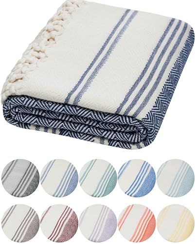DEMMEX Serviette Hammam Peshtemal en Coton Turc Bio – Légère, Absorbante et à Séchage Rapide, Anti-Sable, Serviette de Plage et Bain, 180x90 cm (Bleu Marine)
