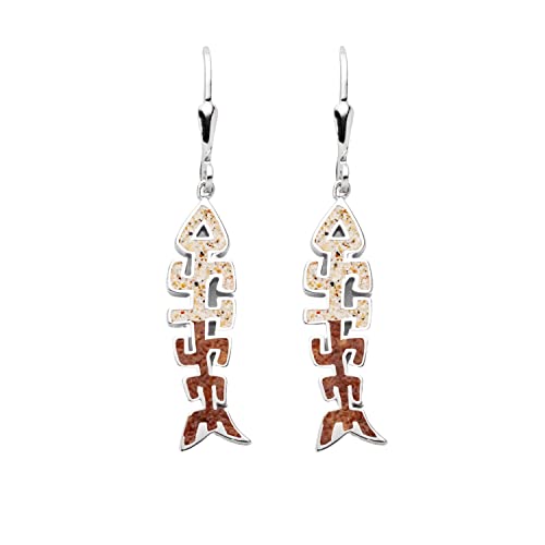 DUR-Schmuck O5471 Boucles d'oreilles pendantes pour femme « arête de poisson de mer Baltique » avec sable de plage et sable de pierre bleue – Argent 925 rhodié – Design marin – Fait main, Höhe: 42 mm