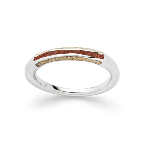 DUR Bague vague en argent sterling 925 avec corail mosaïque et sable de plage raffiné dans la couleur argent/rouge/beige, taille : 56, R5852.56
