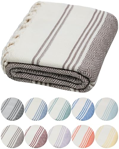 DEMMEX Serviette Hammam Peshtemal en Coton Turc Bio – Légère, Absorbante et à Séchage Rapide, Anti-Sable, Serviette de Plage et Bain, 180x90 cm (Brun)