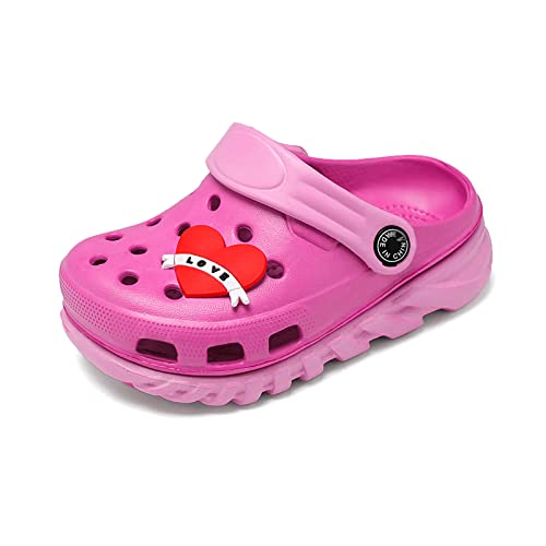 YuanDiann Sabot de Plage Enfant Garcon Fille Chaussures de Jardin Mules Sandales Été Clogs Antidérapant Respirant EVA Surf Piscine (Rose + Rose Rouge 30 EU)