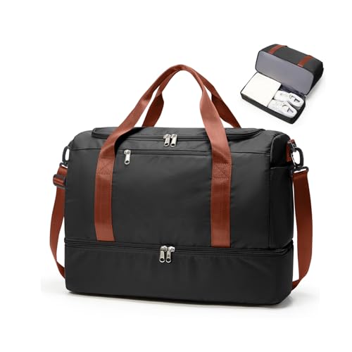 Sac de Voyage 45x36x20 pour Easyjet,Bagage à Main Léger, Sac fourre-Tout de Sport Imperméable pour Week-End avec Compartiment à Chaussures pour Travel Gym Danse,A03-Noir Marron