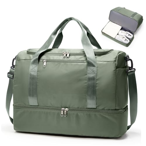 Sac de Voyage 45x36x20 pour Easyjet,Bagage à Main Léger, Sac fourre-Tout de Sport Imperméable pour Week-End avec Compartiment à Chaussures pour Travel Gym Danse,A04-Vert armée