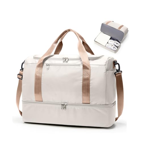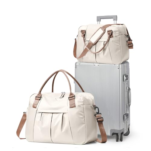 Sac de Voyage 45x36x20 pour Easyjet,Bagage à Main Léger, Sac fourre-Tout de Sport Imperméable pour Week-End avec Compartiment à Chaussures pour Travel Gym Danse,C1-Beige Marron