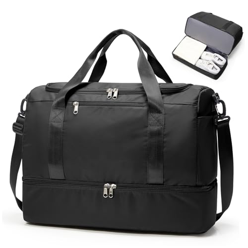 Sac de Voyage 45x36x20 pour Easyjet,Bagage à Main Léger, Sac fourre-Tout de Sport Imperméable pour Week-End avec Compartiment à Chaussures pour Travel Gym Danse,C2-Noir