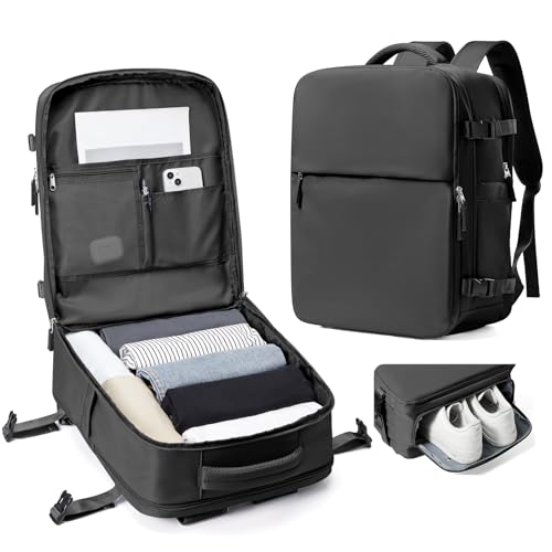 LIGSAN Sac a Dos Voyage Cabine Avion 45x36x20 pour easyJet Bagage Cabine 30L Femme Homme Bagage à Main Sous Siege Cabine Sac à Dos pour Ordinateur Portable 15.6 Pouces, Noir