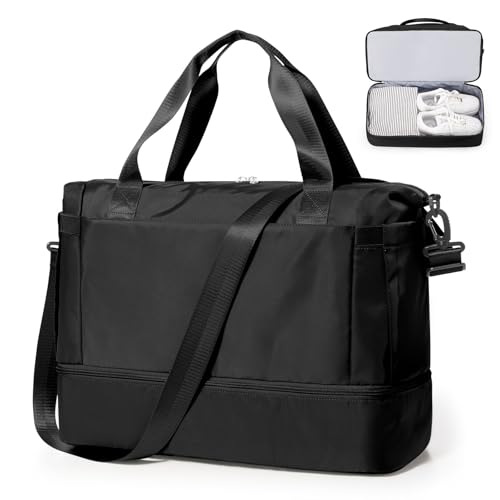 Sac de Voyage 45x36x20 pour Easyjet,Bagage à Main Léger, Sac fourre-Tout de Sport Imperméable pour Week-End avec Compartiment à Chaussures pour Travel Gym Danse,G01-noir