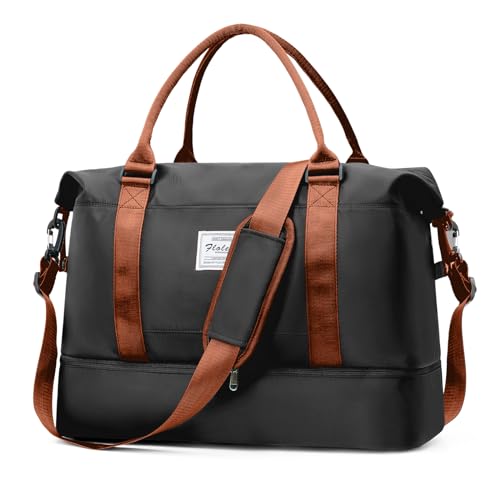 HPLQQ Sac de Voyage Femme, Bagage Cabine 45x36x20 Easyjet, Imperméable Sac fourre-Tout de Sport pour Week-End pour Travel Gym Danse avec Compartiment Chaussures,A05-Marron Noir
