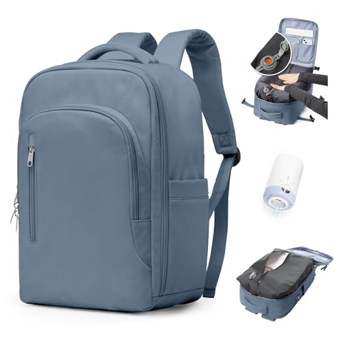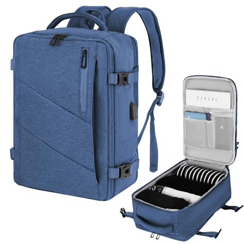 VOESLD Sac a Dos Voyage Bagage Cabine 45x36x20 pour Easyjet Sacs à Dos Loisir Femme Homme Beige Sac à Dos Ordinateur Portable Bleu avec Port USB 32L