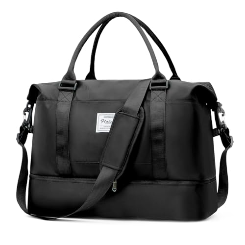 HPLQQ Sac de Voyage Femme, Bagage Cabine 45x36x20 Easyjet, Imperméable Sac fourre-Tout de Sport pour Week-End pour Travel Gym Danse avec Compartiment Chaussures,A02-Noir