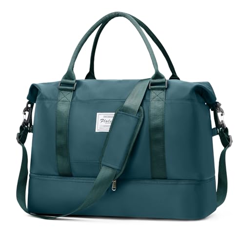 Sac de Voyage 45x36x20 pour Easyjet,Bagage à Main Léger, Sac fourre-Tout de Sport Imperméable pour Week-End avec Compartiment à Chaussures pour Travel Gym Danse,E03-Bleu Paon