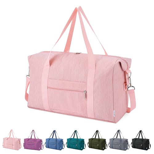 SEAFEW Sac de Voyage Femme Sac fourre-Tout de Sport Imperméable pour Week-End, Cabine Avion Ryanair Bagage Cabine 40x20x25 Easyjet 45x36x20 Extensible pour Travel Gym Danse,H3-Rose