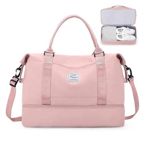 Sac de Voyage 45x36x20 pour Easyjet,Bagage à Main Léger, Sac fourre-Tout de Sport Imperméable pour Week-End avec Compartiment à Chaussures pour Travel Gym Danse,A07-Rose