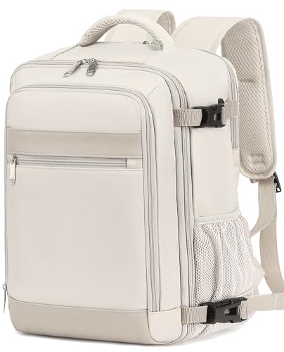 KLOSTAIN Sac à Dos Voyage Cabine Avion 45x36x20 pour Easyjet 30L Bagage Cabine Grande sous Siège Bagage à Main Homme Femme Sac à Dos pour Ordinateur Portable 15.6 Pouces Couleur Beige