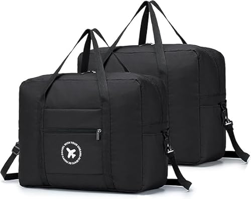 SPAHER Bagage Cabine 45x36x20 Easyjet Tui Airways Sac de Voyage Pliable Valise Sac de Cabine Avion Rangement Portable Organisateur de Sac, B285-Noir -1pcs, 55x40x20 cm, Bagage Cabine