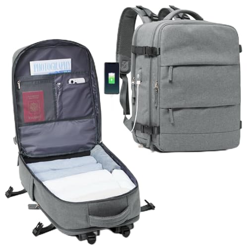 SZLX Sac à Dos Voyage Cabine Ryanair,Bagage Cabine 45x36x20 Easyjet Sac de Voyage Bagage à Main Avion Femme Sac à Dos Ordinateur Portable Imperméable pour Travail de Randonnée Homme Gris