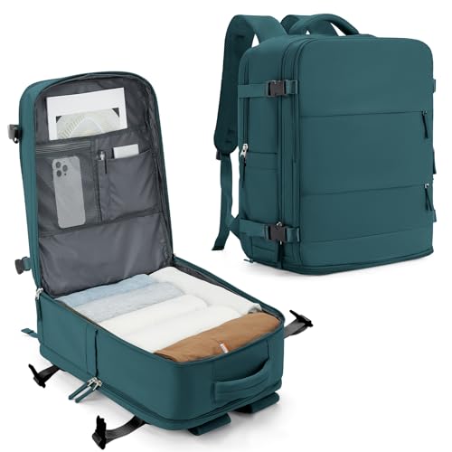 BJLFS Sac à dos sous vide avec pompe Ryanair Wizzair 40x30x20 Femme Sac Cabine Avion 40x30x20 pour Ryanair Bagage Cabine 45x36x20 Easyjet Bagage à Main Sac pour Ordinateur Portable Homme Pfauenblau