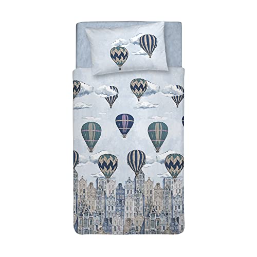 PENSIERI DELICATI Parure de lit Simple 100% Coton, avec Sac 155 x 200 cm et 1 taie d'oreiller 52 x 82 cm, fabriquée en Italie, Housse de Couette Lavable en Machine à 40 °, Motif Ballons Bleus
