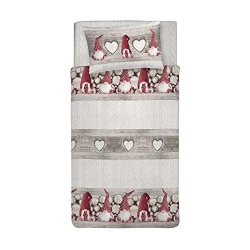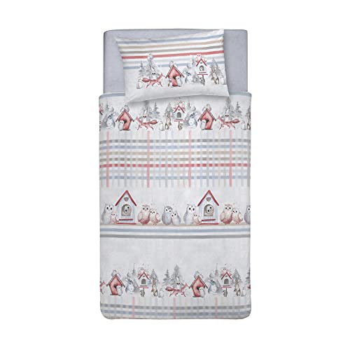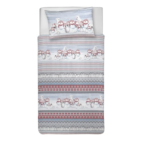 PENSIERI DELICATI Parure de lit Simple 100% Coton, avec Sac 155 x 200 cm et 1 taie d'oreiller 52 x 82 cm, fabriquée en Italie, Housse de Couette Lavable en Machine à 40 °, Fantaisie Hiver Polaire