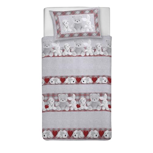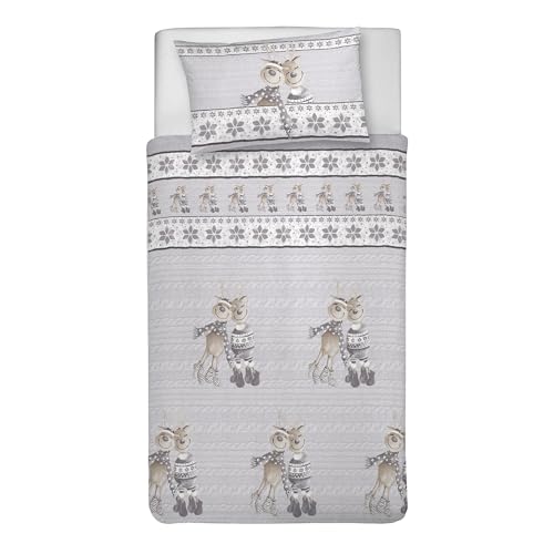 PENSIERI DELICATI Parure de lit Simple 100% Coton, avec Sac 155 x 200 cm et 1 taie d'oreiller 52 x 82 cm, fabriquée en Italie, Housse de Couette Lavable en Machine à 40 °, Fantaisie Renne Gris