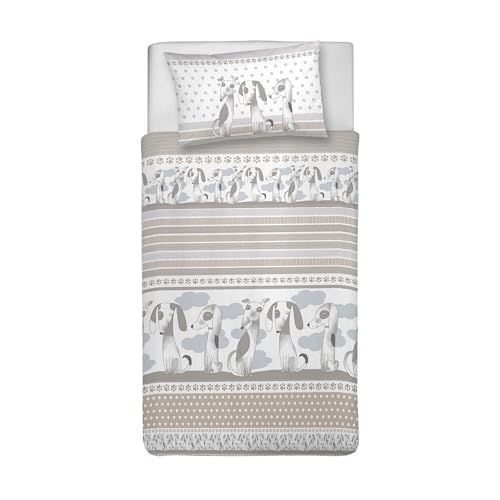PENSIERI DELICATI Parure Housse de Couette 100% Coton, avec Sac 155 x 200 cm et 1 taie d'oreiller 52 x 82 cm, fabriquée en Italie, Housse de Couette Lavable en Machine à 40 °, Fantaisie Baubau Beige