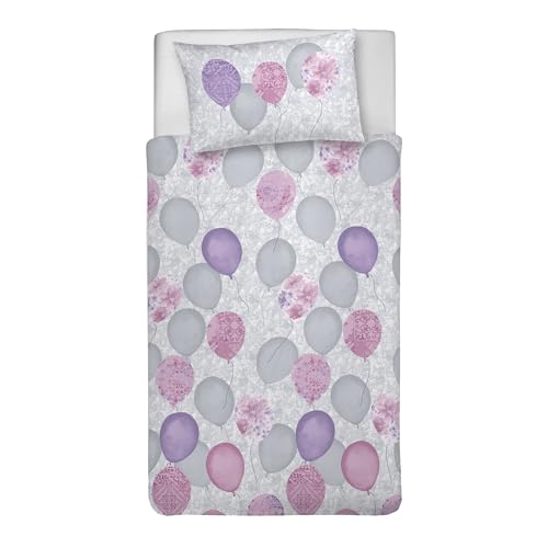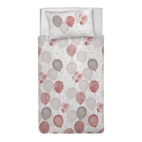 PENSIERI DELICATI Parure de lit Simple 100% Coton, avec Sac 155 x 200 cm et 1 taie d'oreiller 52 x 82 cm, fabriquée en Italie, Housse de Couette Lavable en Machine à 40 °, Motif Ballons Roses