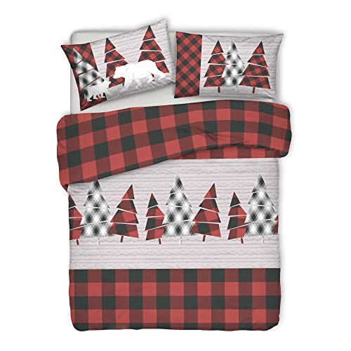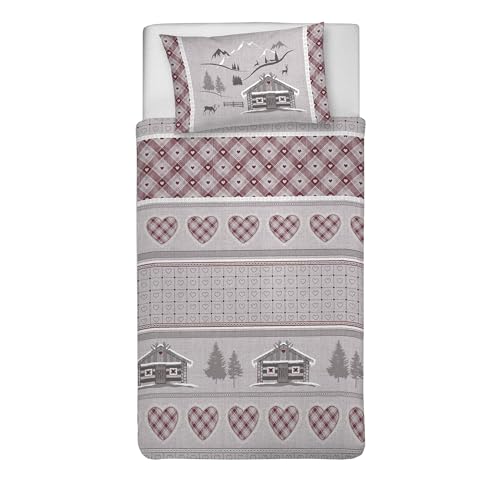 PENSIERI DELICATI Parure de lit Simple 100% Coton, avec Sac 1550 x 200 cm et 1 taie d'oreiller 52 x 82 cm, fabriquée en Italie, Housse de Couette Lavable en Machine à 40 °, Motif Chalet Rouge