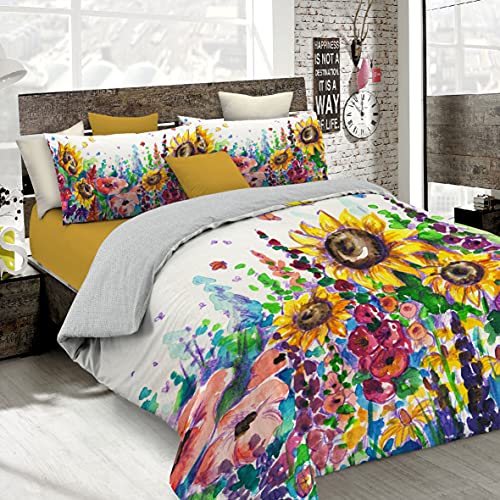 Parure de couette avec impression numérique à couverture totale sur le sac et sur les taies d'oreiller 2 places 100% coton Matrimoniale (250 x 200 cm + 2/52 x 82 cm) Multicolore 19