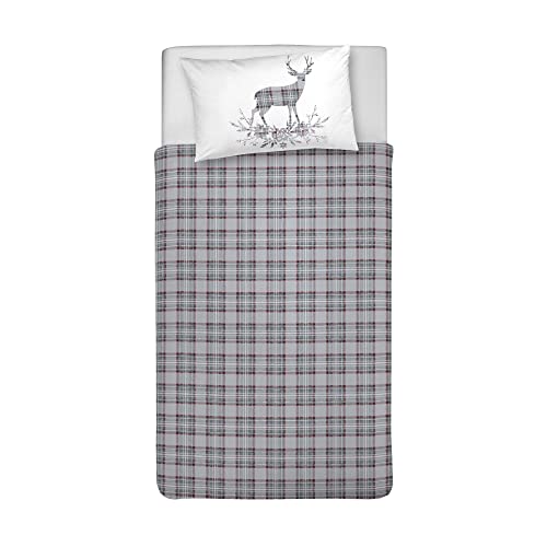 PENSIERI DELICATI Parure de lit Simple Flanelle 100% Coton, Sac 155 x 200 cm et taie d'oreiller 52 x 82 cm, fabriquée en Italie, Housse de Couette Lavable en Machine à 40 °, Fantaisie cerf Rouge