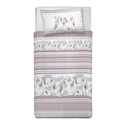 PENSIERI DELICATI Parure Housse de Couette 100% Coton, avec Sac 155 x 200 cm et 1 taie d'oreiller 52 x 82 cm, fabriquée en Italie, Housse de Couette Lavable en Machine à 40 °, Fantaisie Baubau Rose