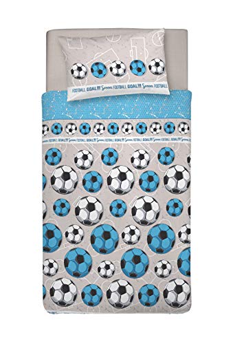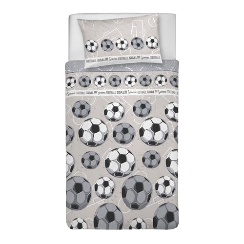 PENSIERI DELICATI Parure de lit Simple 100% Coton, avec Sac 155 x 200 cm et 1 taie d'oreiller 52 x 82 cm, fabriquée en Italie, Housse de Couette Lavable en Machine à 40 °, Motif Football Gris