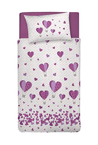 PENSIERI DELICATI Parure de lit Simple 100% Coton, avec Sac 155 x 200 cm et 1 taie d'oreiller 52 x 82 cm, fabriquée en Italie, Housse de Couette Lavable en Machine à 30 °, Fantaisie montgolfière Rose