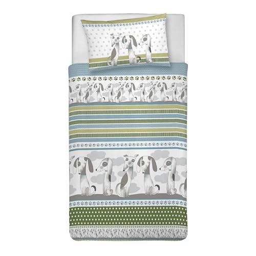 PENSIERI DELICATI Parure Housse de Couette 100% Coton, avec Sac 155 x 200 cm et 1 taie d'oreiller 52 x 82 cm, fabriquée en Italie, Housse de Couette Lavable en Machine à 40 °, Fantaisie Baubau Vert