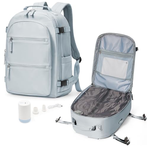 Sac a Dos sous Vide de Voyage Cabine Avion avec Pompe Électrique – Sac de Compression avec Airbag, Bagage à Main Imperméable Anti-vol, Homme Femme (Bleu)