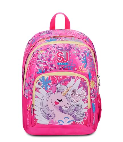SJ Gang Style Jam Gang Sac à Dos d'école avancé, Rose, Licorne LED, Sac à Dos Double Compartiment avec Poche pour Ordinateur ou Tablette, Poche Porte-Bouteille et Organisateur, Sac à Dos école