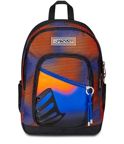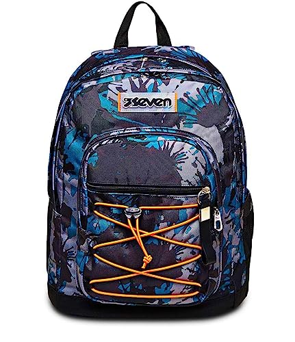 Seven Sac à dos d'école dual, bleu et orange, Shadefull Boy, sac à dos double compartiment avec poche pour ordinateur ou tablette, poche porte-bouteille et organisateur, sac à dos pour écoles moyennes