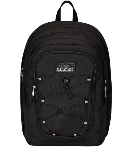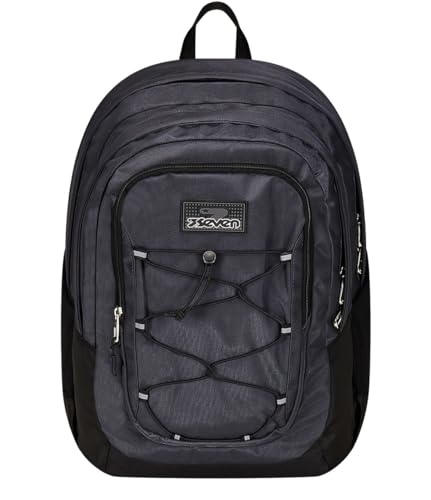 Seven Sac à Dos d'école Adavanced Pockets, Noir Gris, Feeling Me, Sac à Dos Double Compartiment Multi-Poches, avec Poche pour PC, Poche Porte-Bouteille et Organisateur, Sac à Dos Moyen et supérieur,